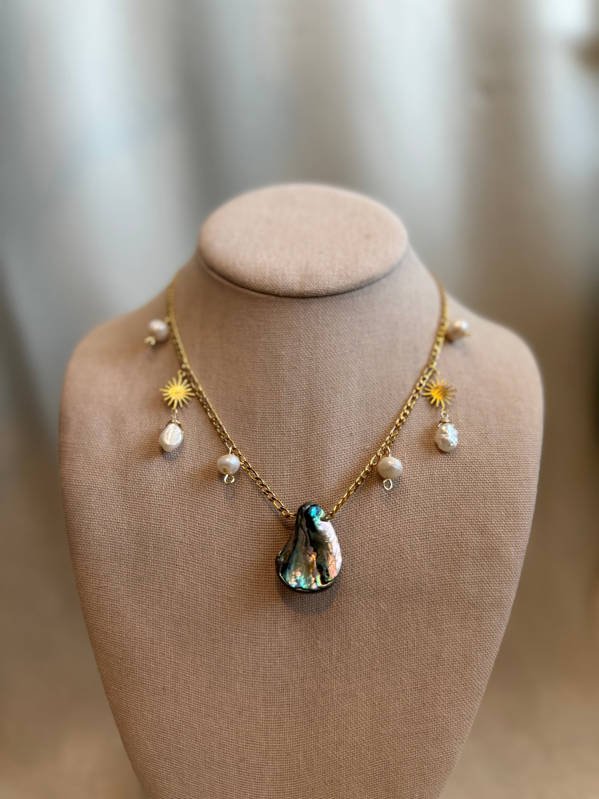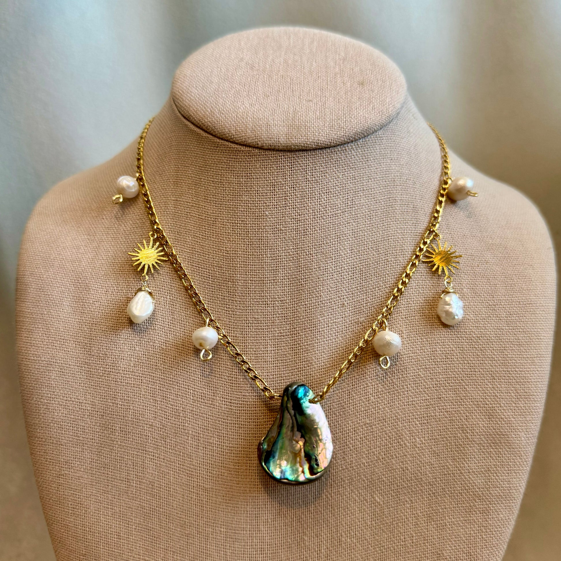 Abalone Freshwater Pearl Choker on 15-16” non-tarnish gold plated chain