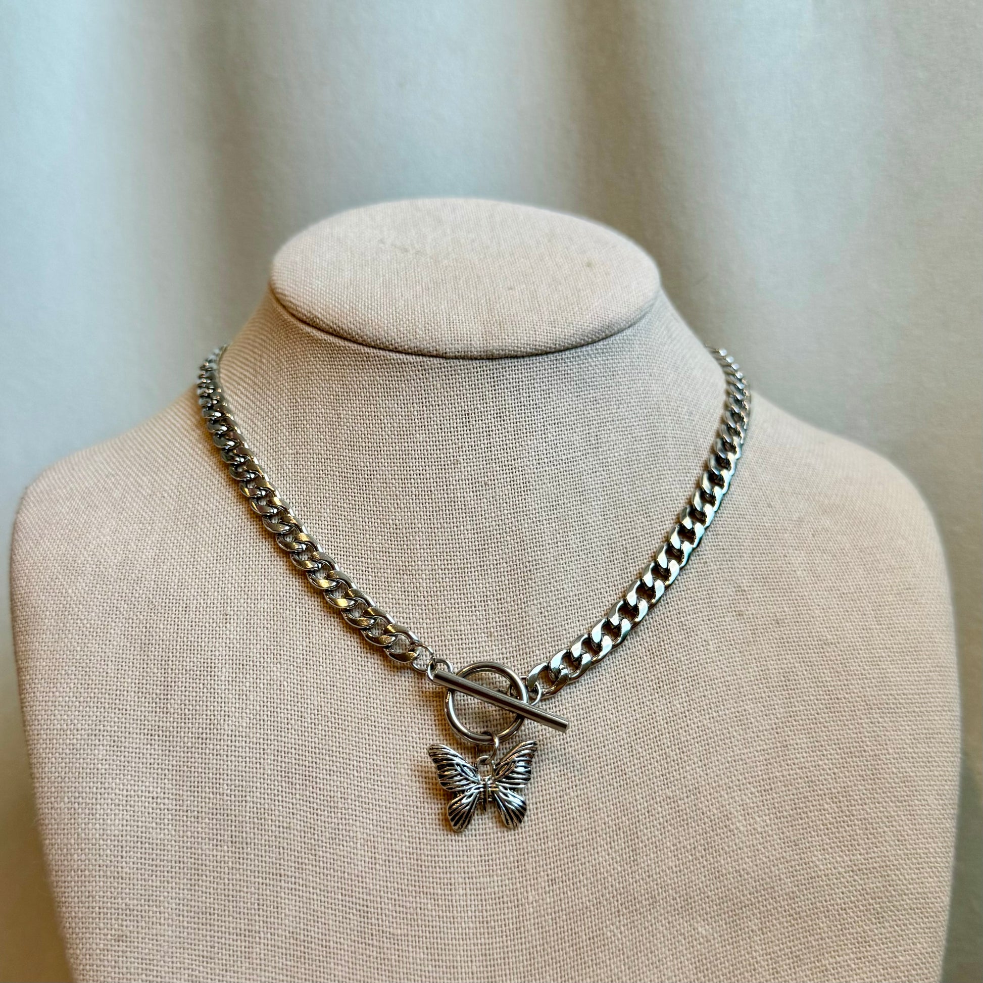 Butterfly toggle choker on 15” stainless steel chain