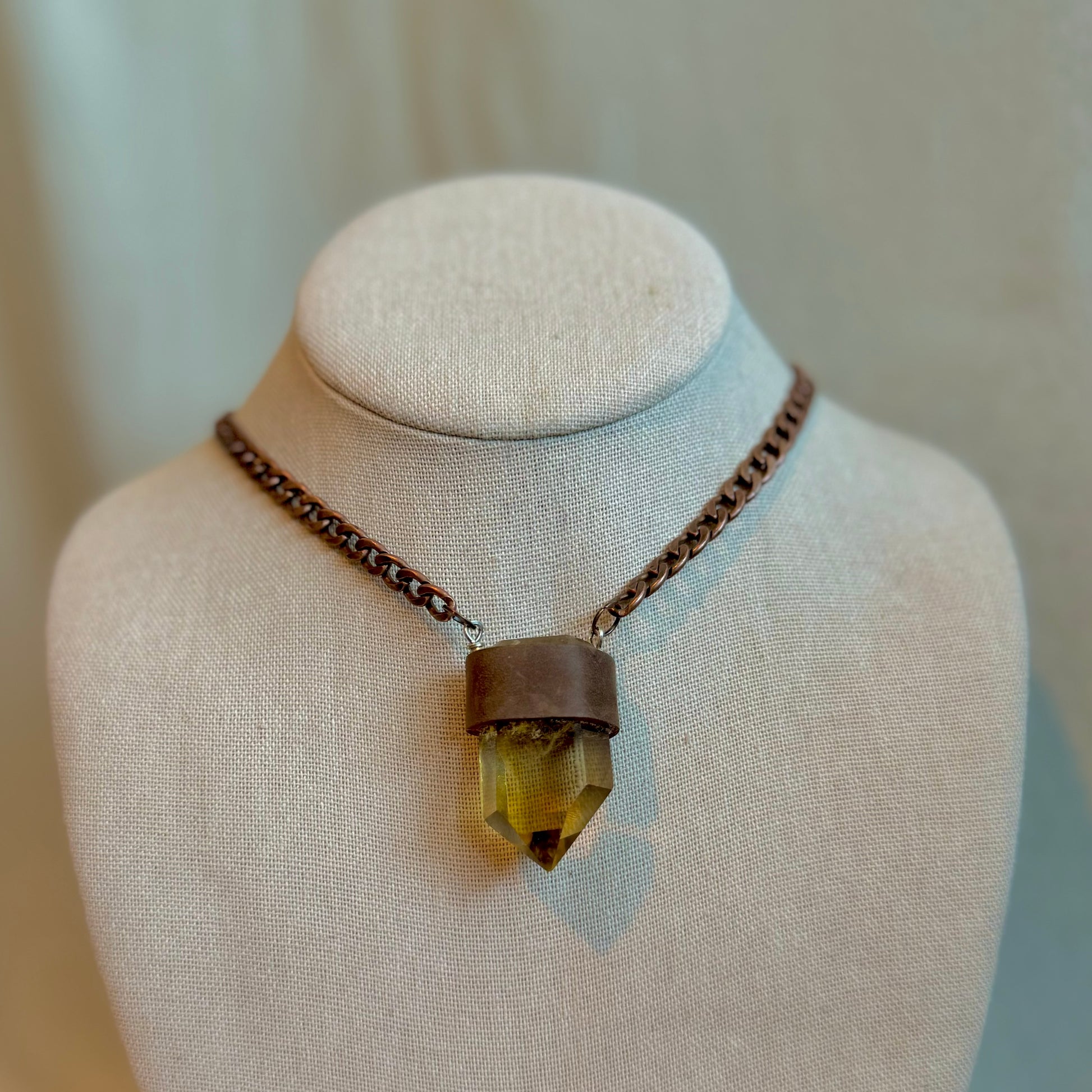 AAA quality natural Citrine on 18” antiqued copper chain accented with genuine brown leather
