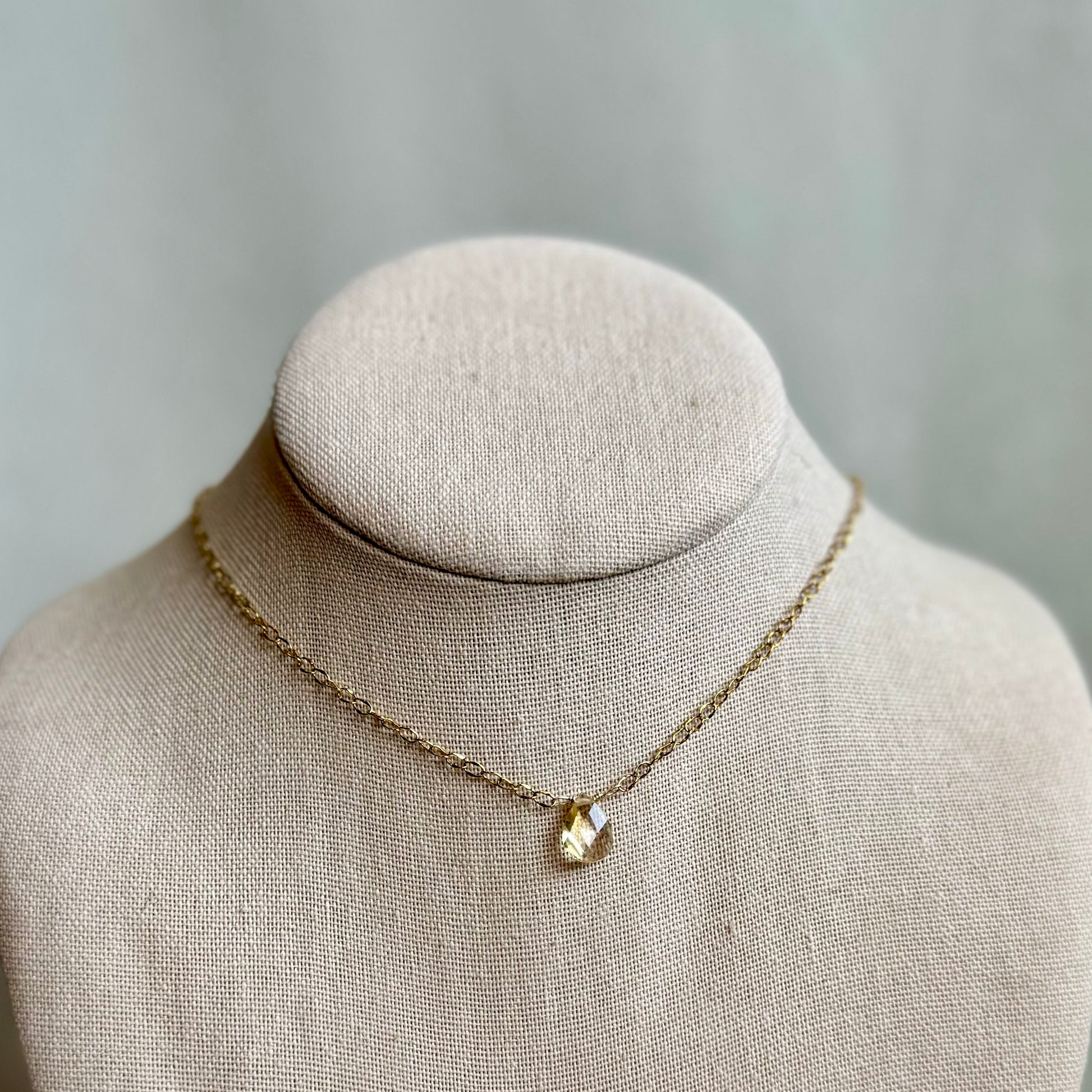 Citrine Teardrop Choker on 15-18” gold plated chain