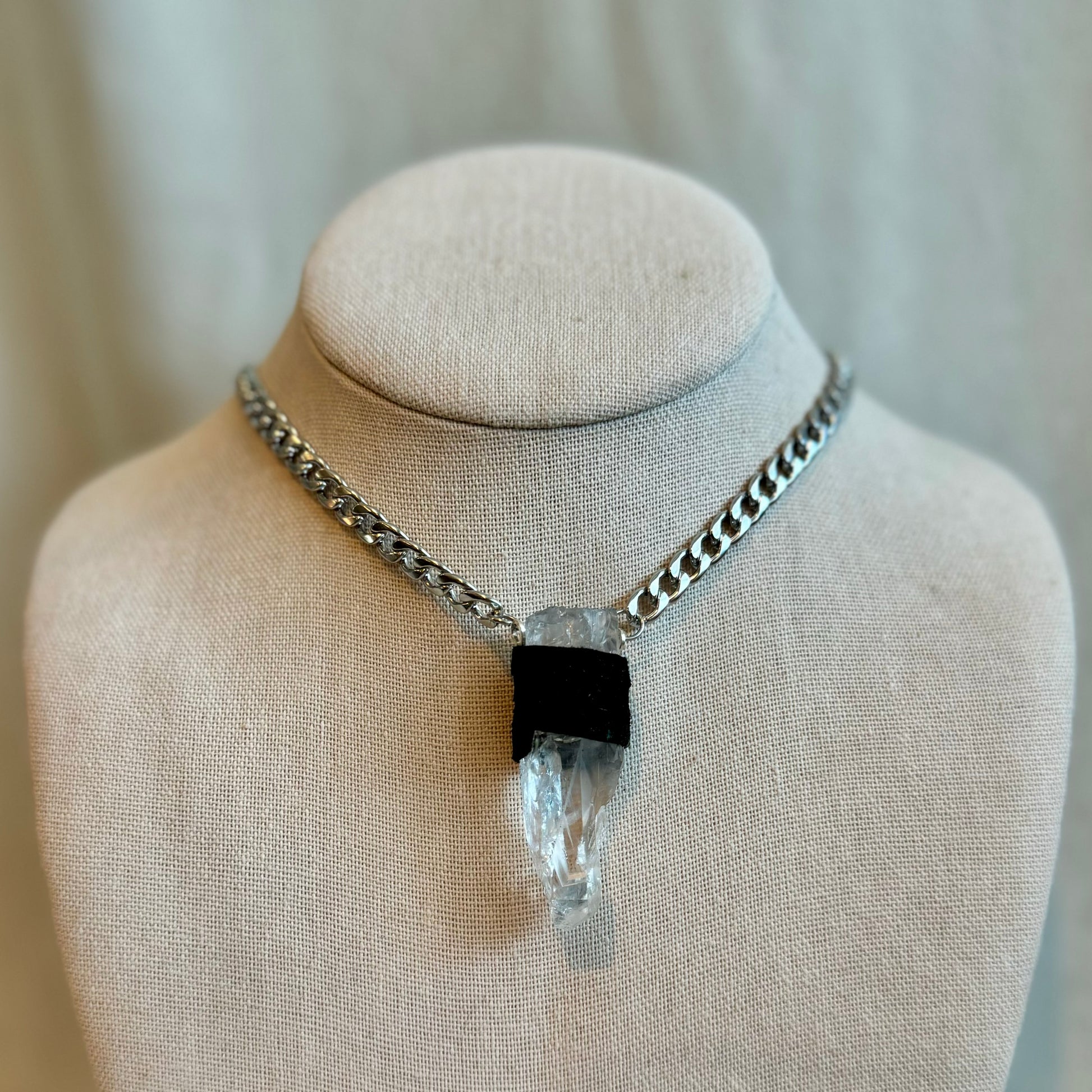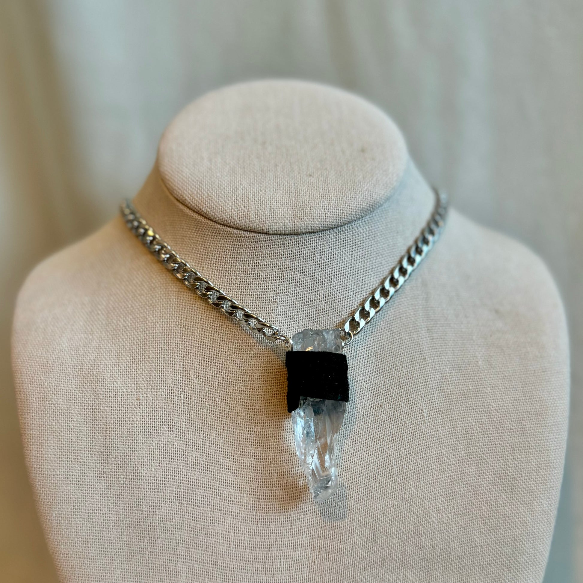 Clear Quartz Pendant On genuine leather and 18-20” stainless steel chain