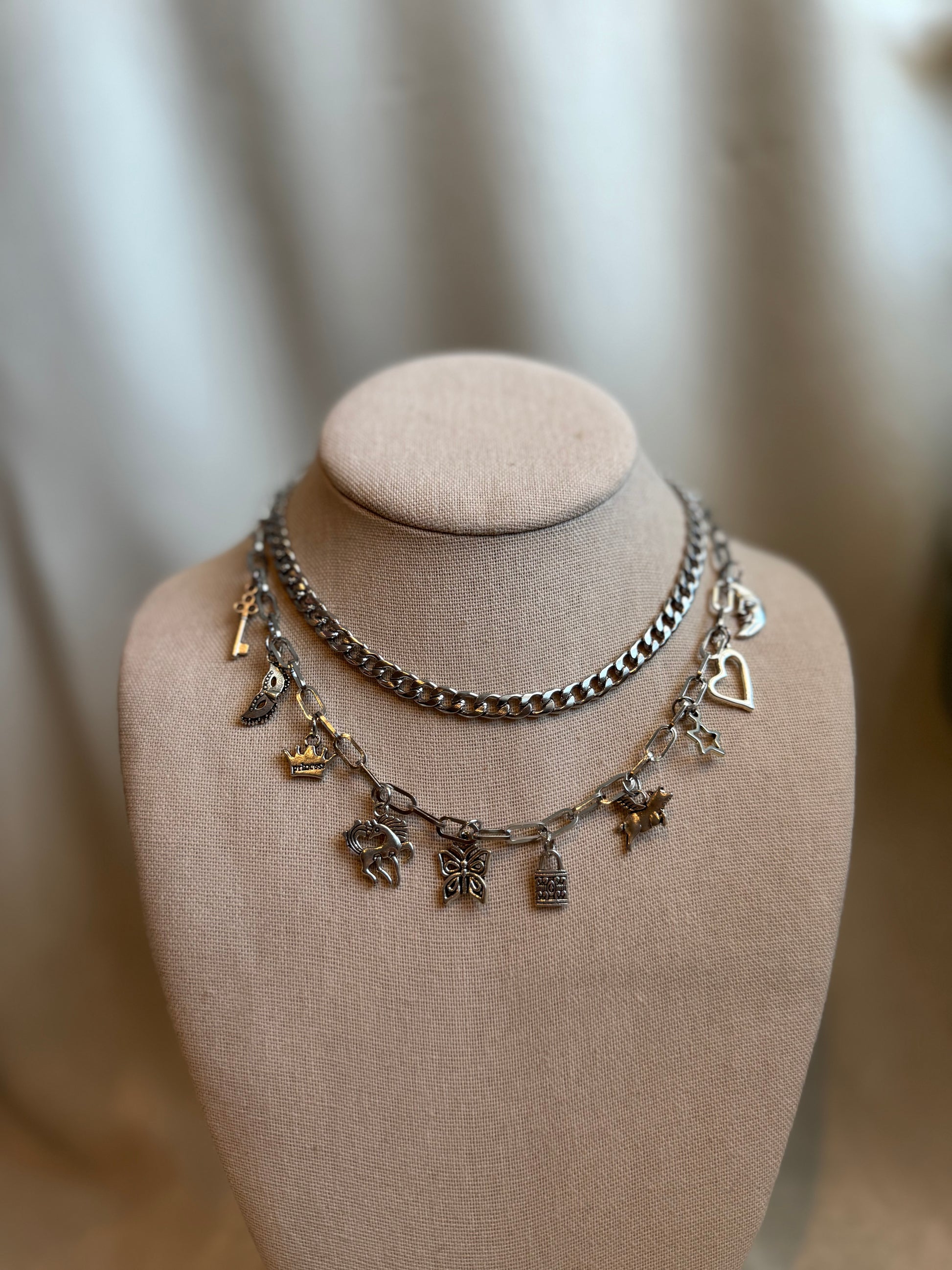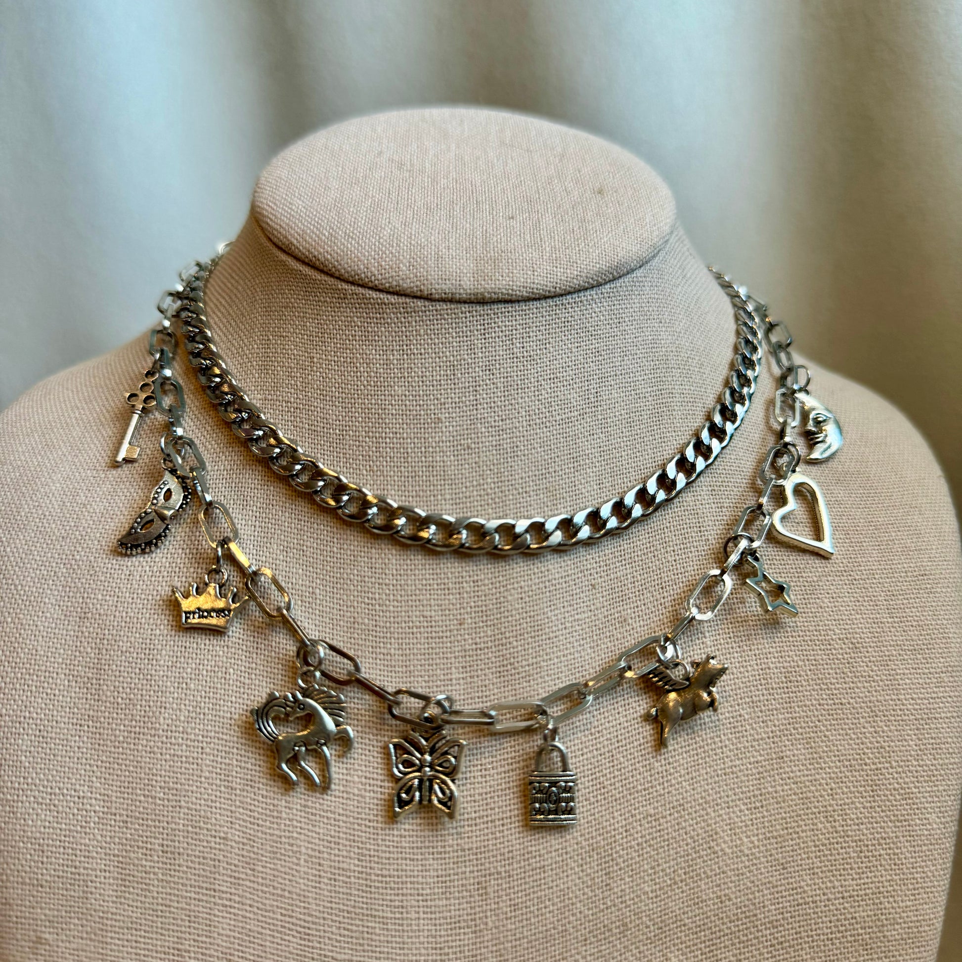 1 of 1 eclectic layered charm choker on 15-18” adjustable length stainless steel chain