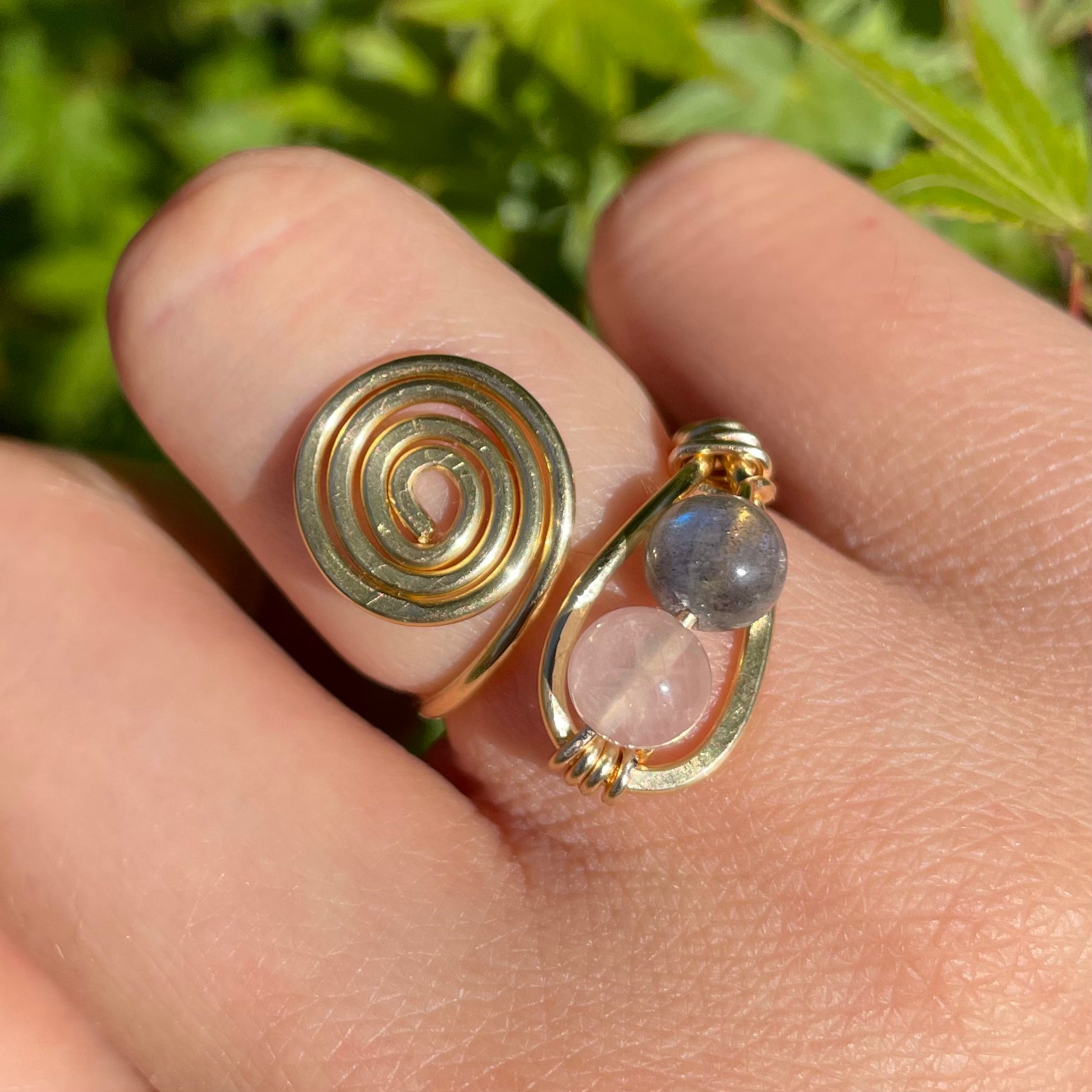 Labradorite x Rose Quartz Spiral Adjustable Ring