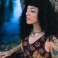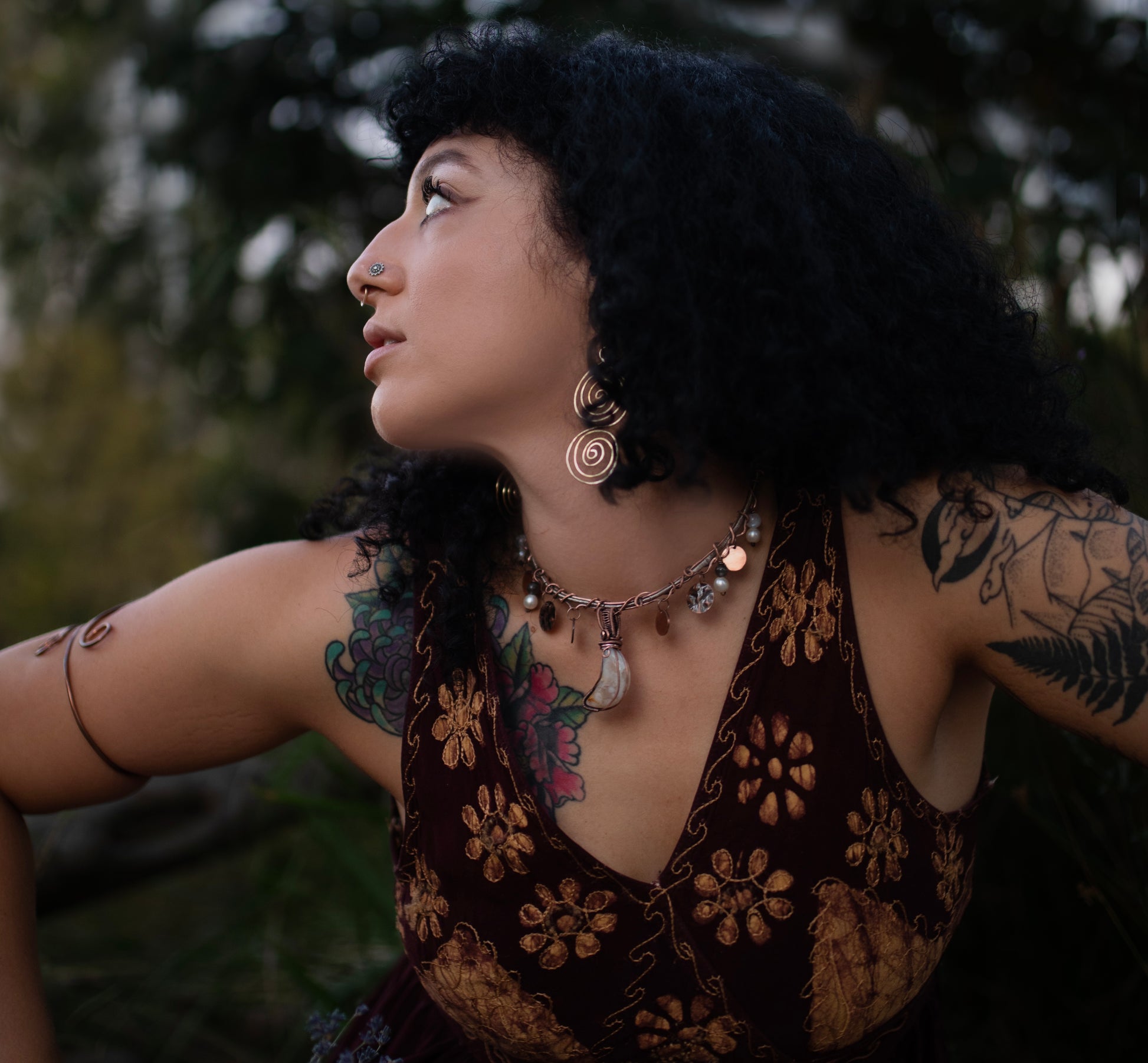 The one of one “Lunar” Goddess Choker features a flower agate crescent moon, accented with fresh water pearls, moonstone and labradorite. Adjustable in size and wrapped in high quality .925 silver & antiqued copper.