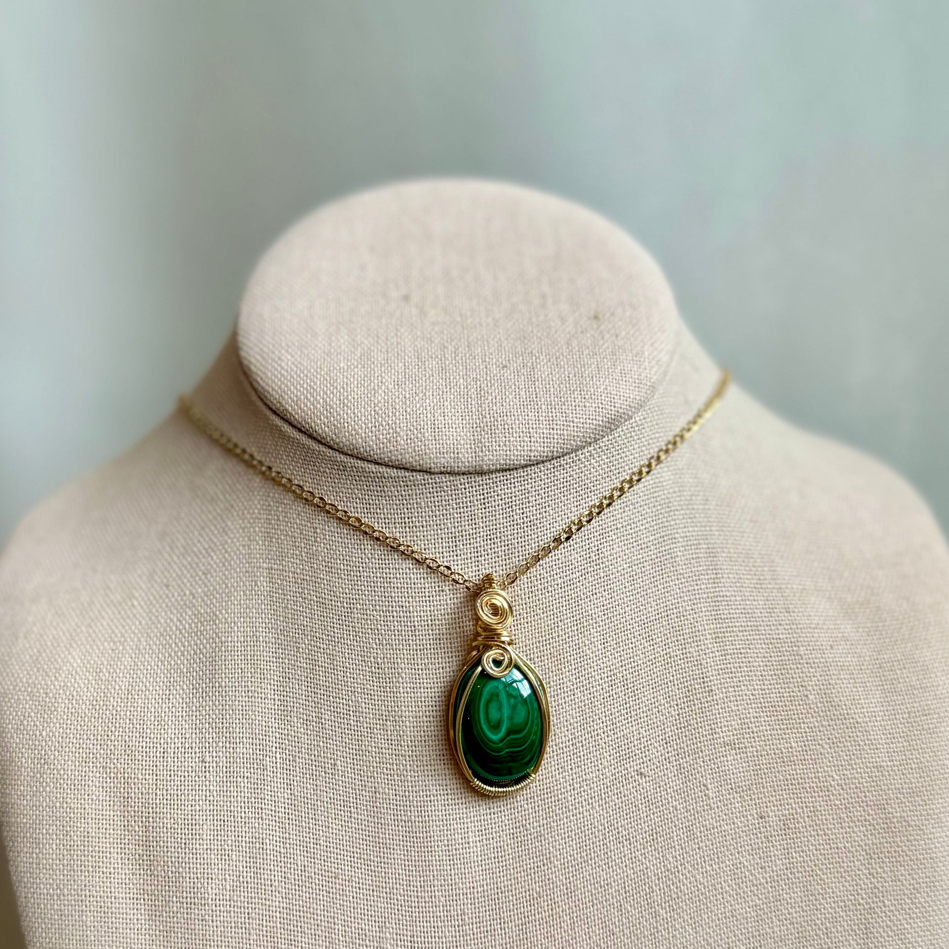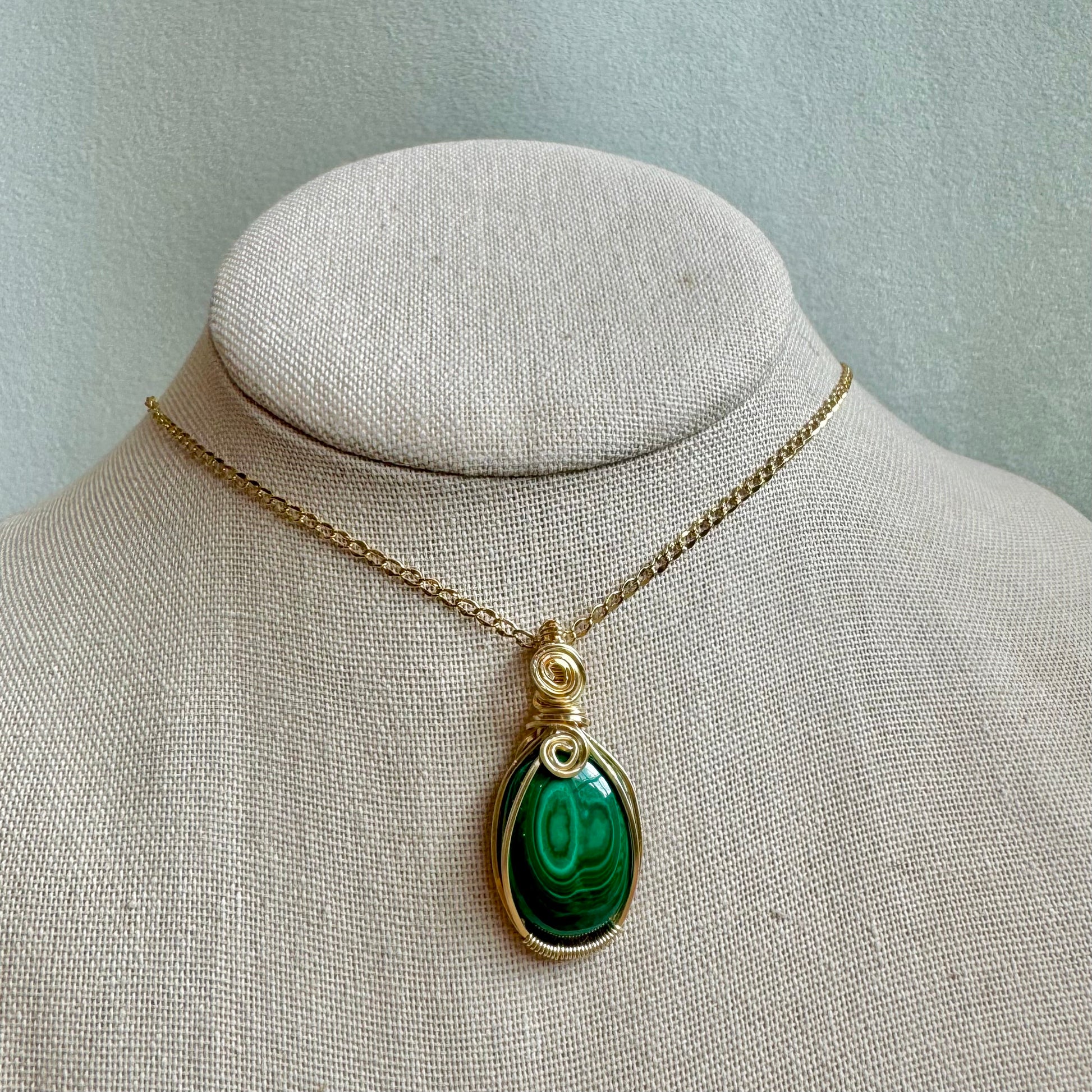 Malachite “Rebirth” full size Pendant on 15-18” gold plated chain