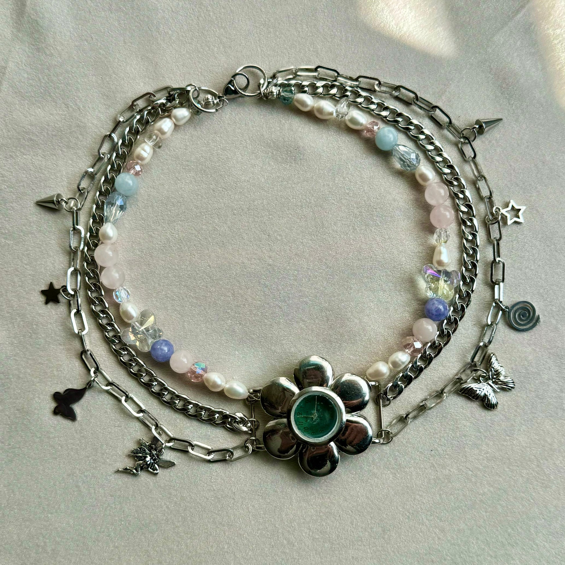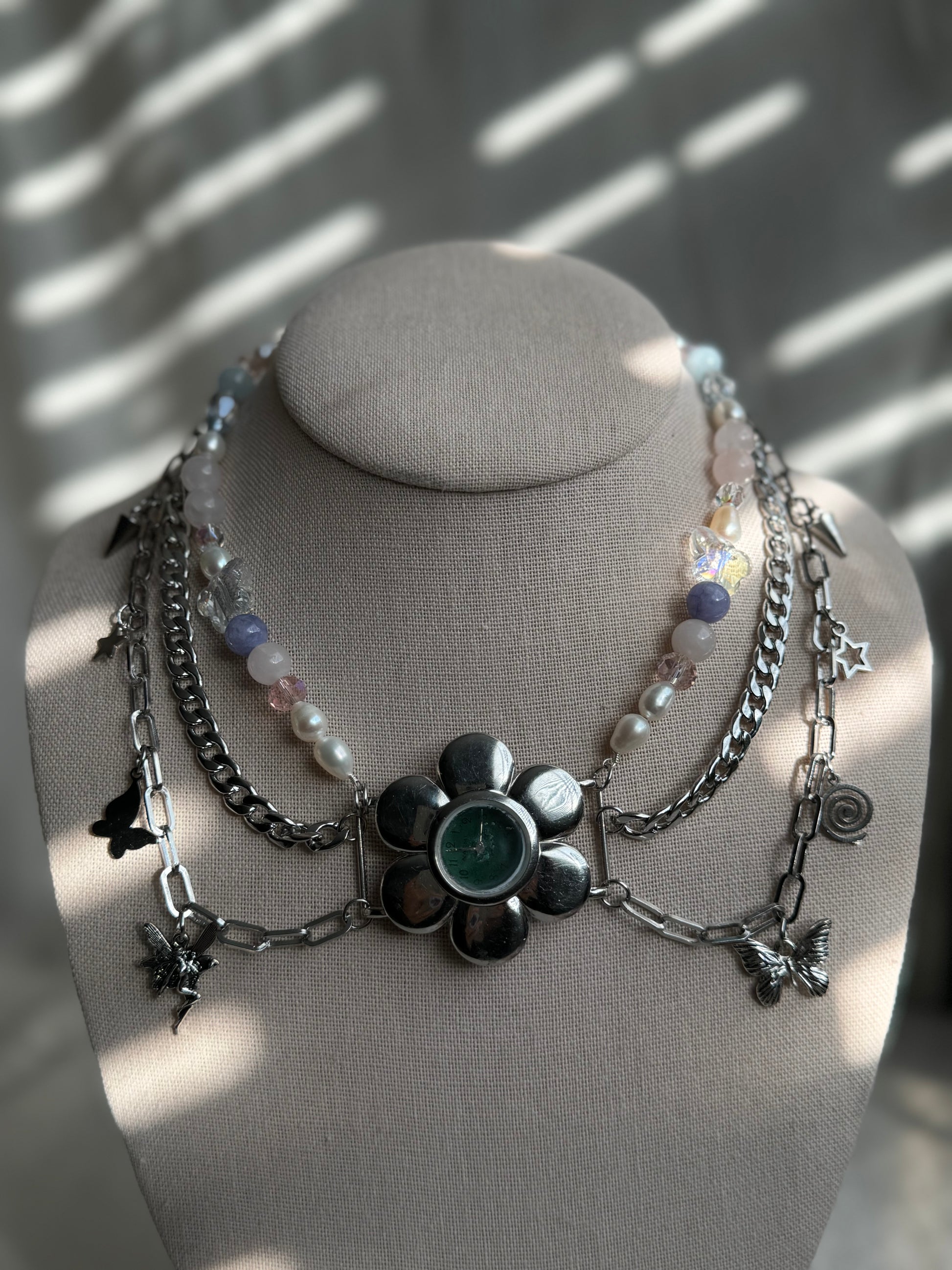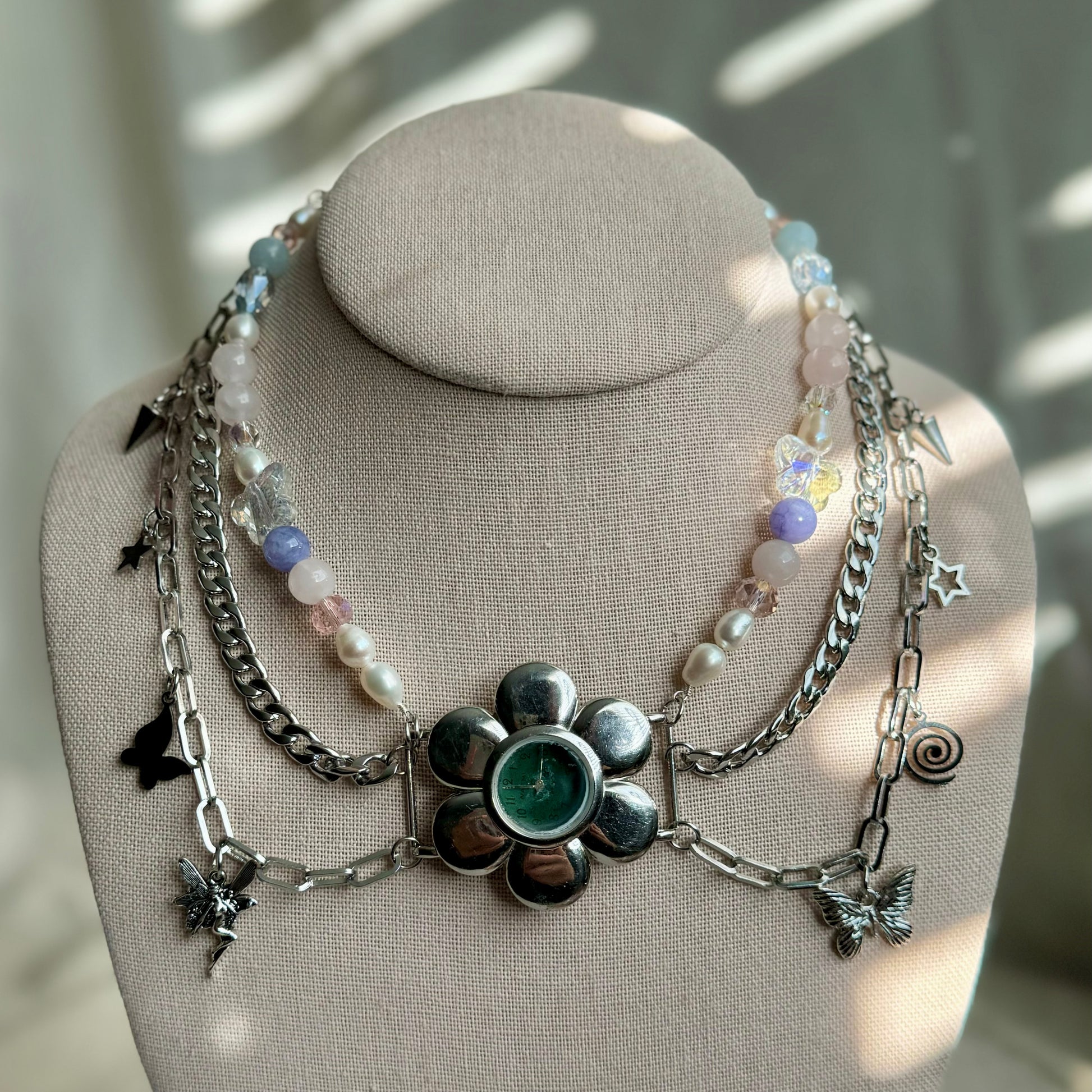 1 of 1 upcycled watch choker featuring high quality beads and stainless steel findings adjustable length 14-18”