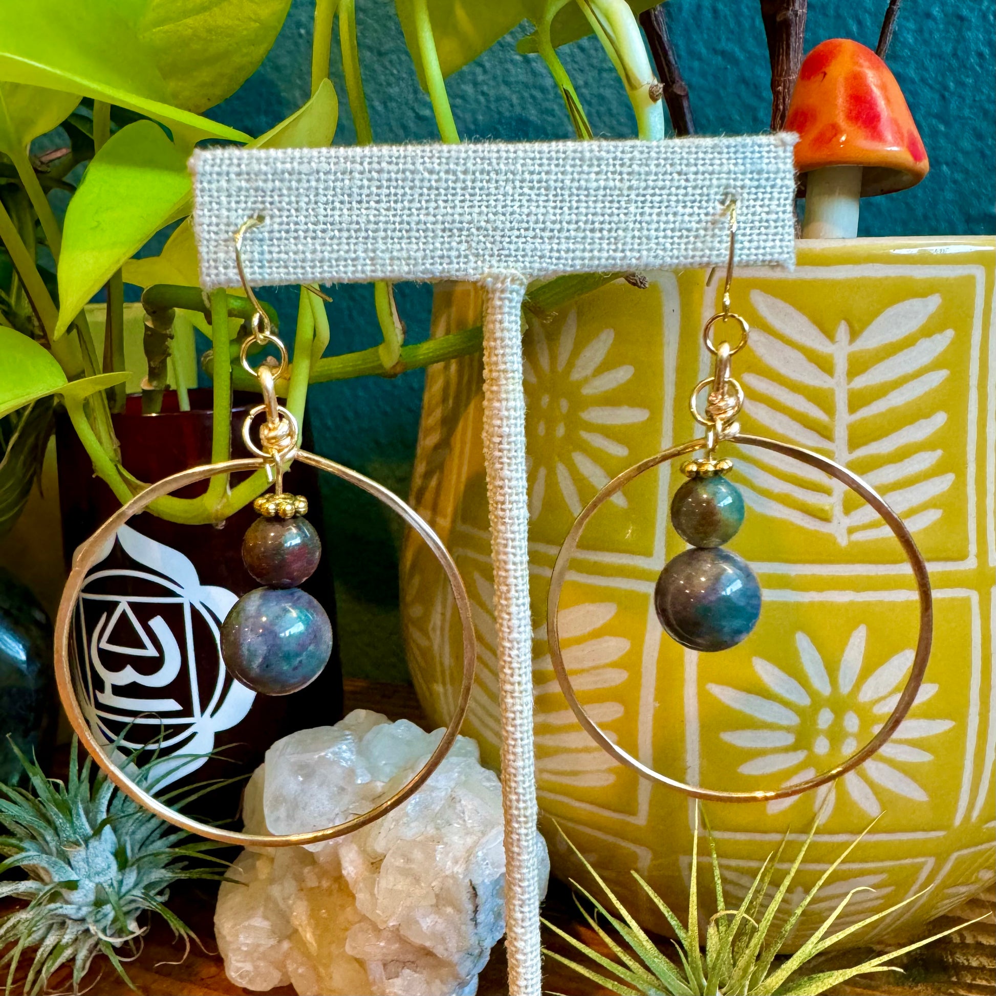 Ocean Jasper Brass Hoops
