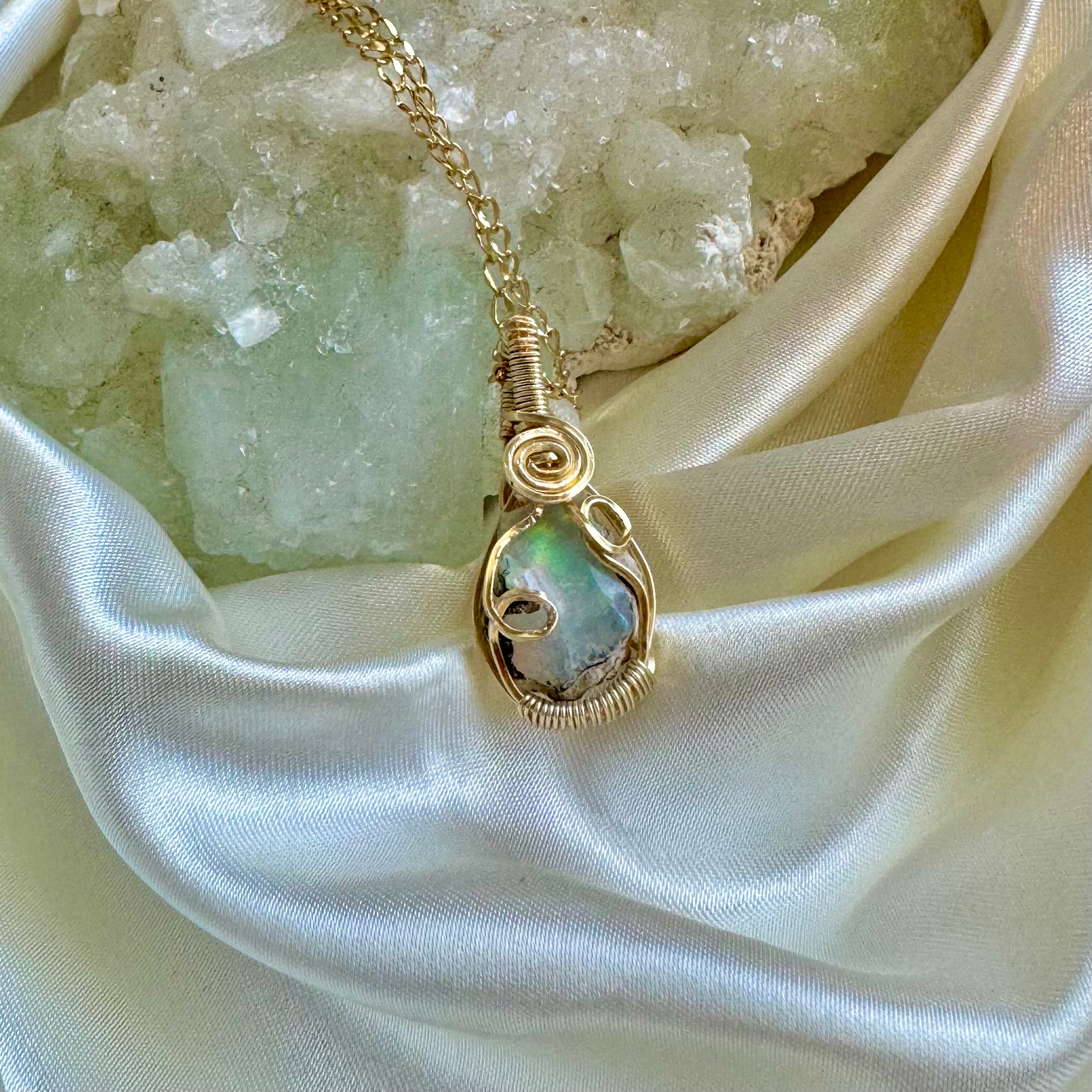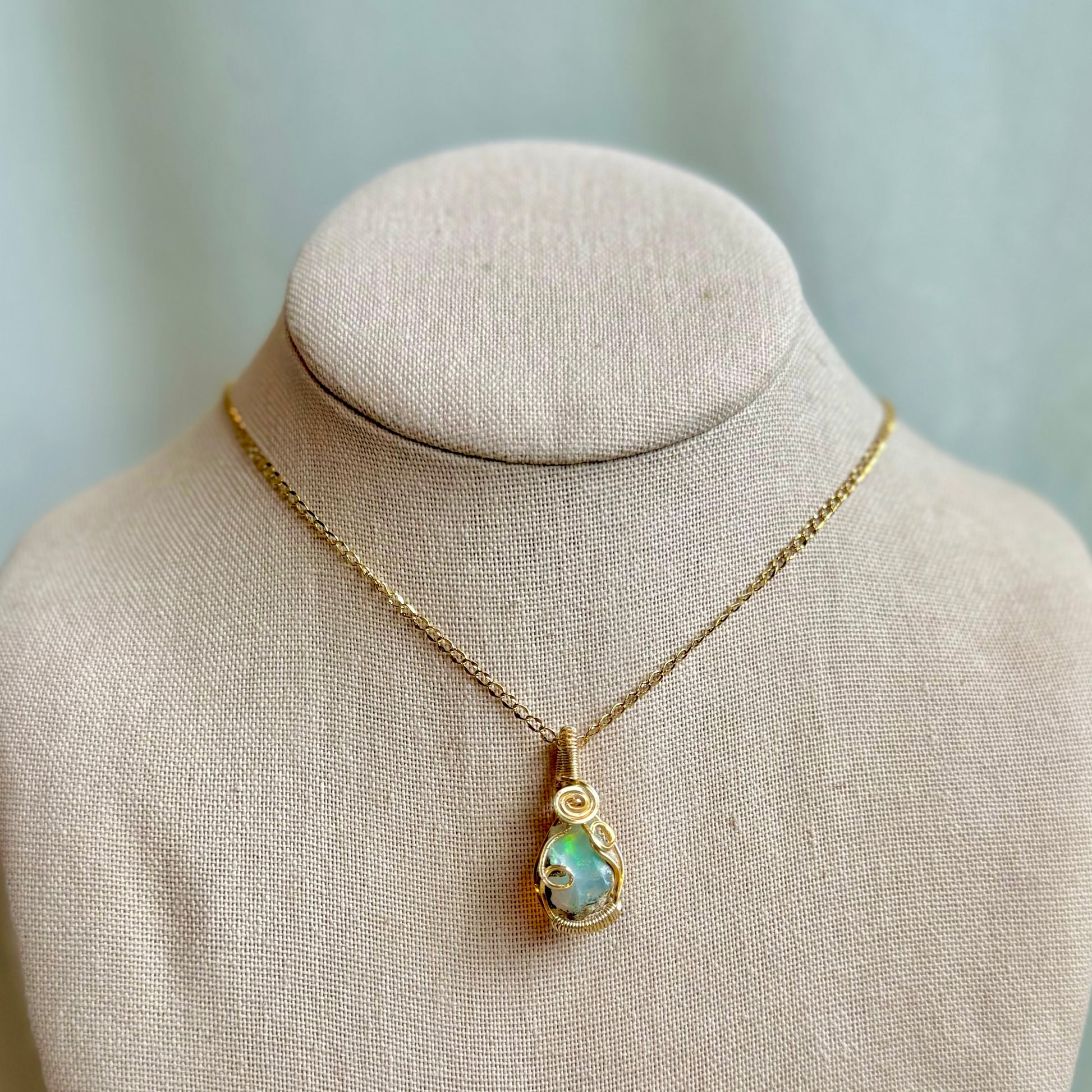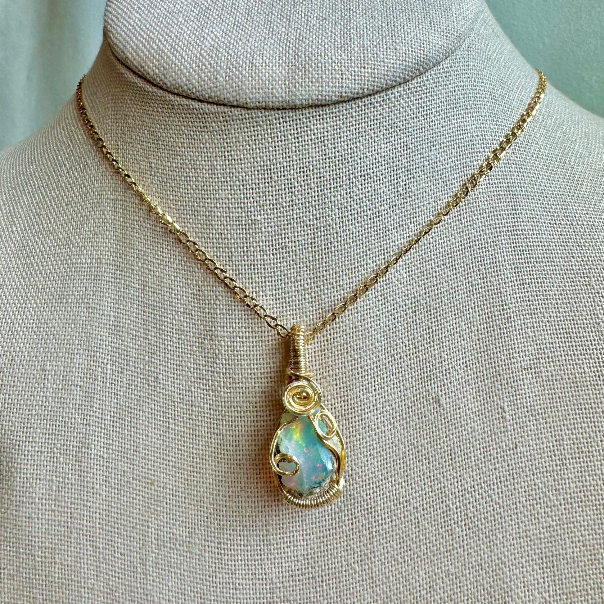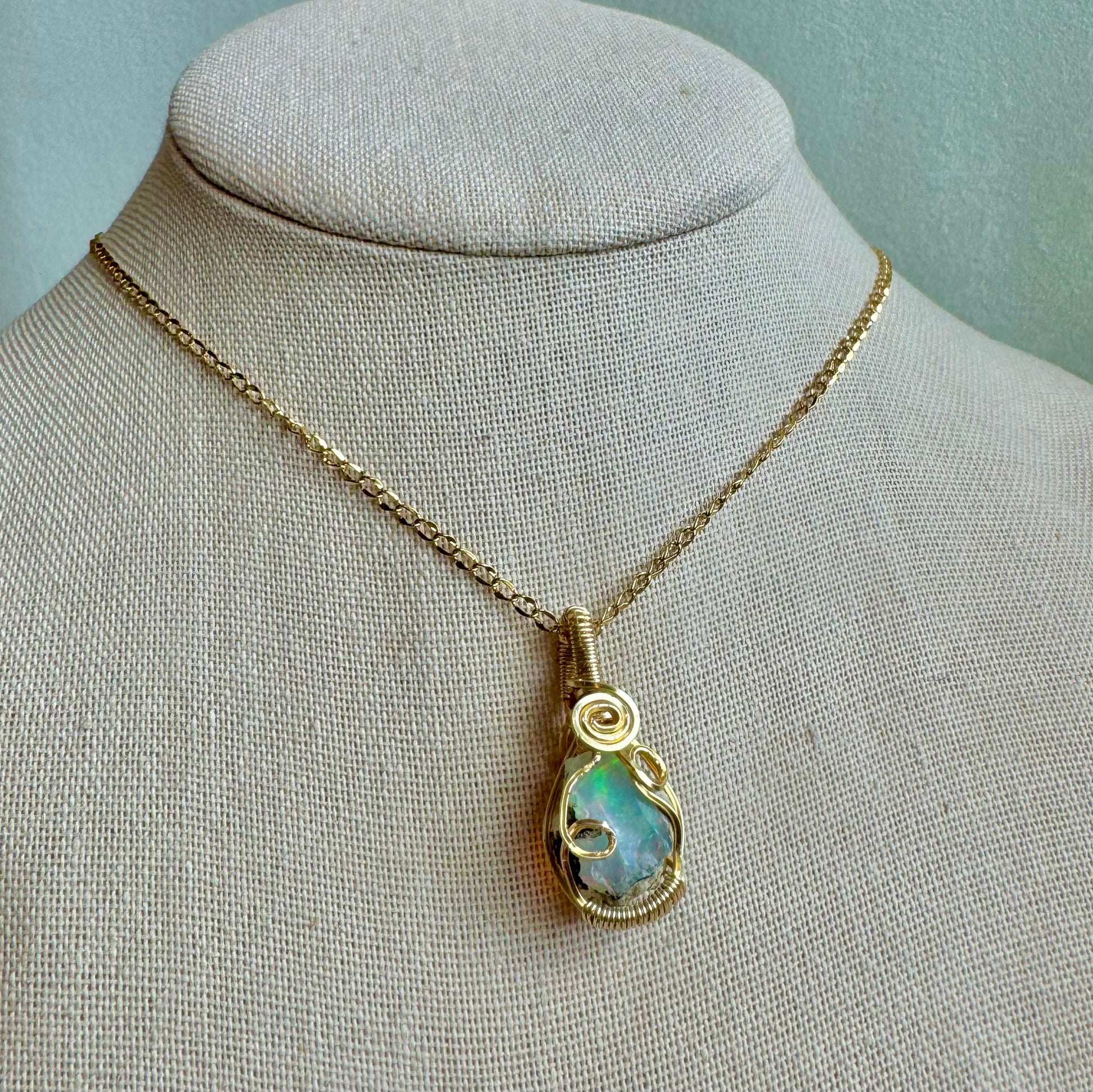Raw Ethiopian Opal Mini “Solaris” Pendant on 15-18” adjustable length gold plated chain