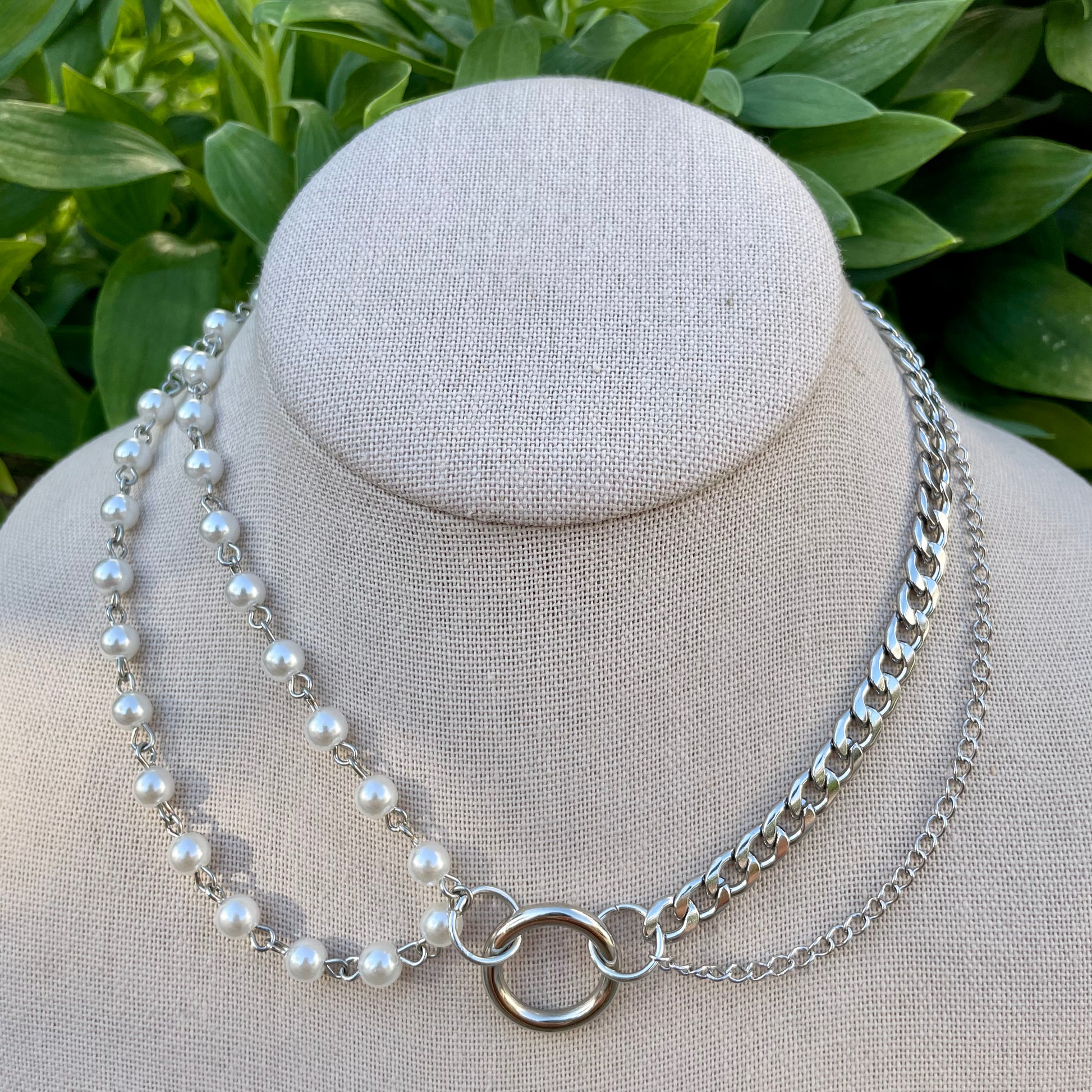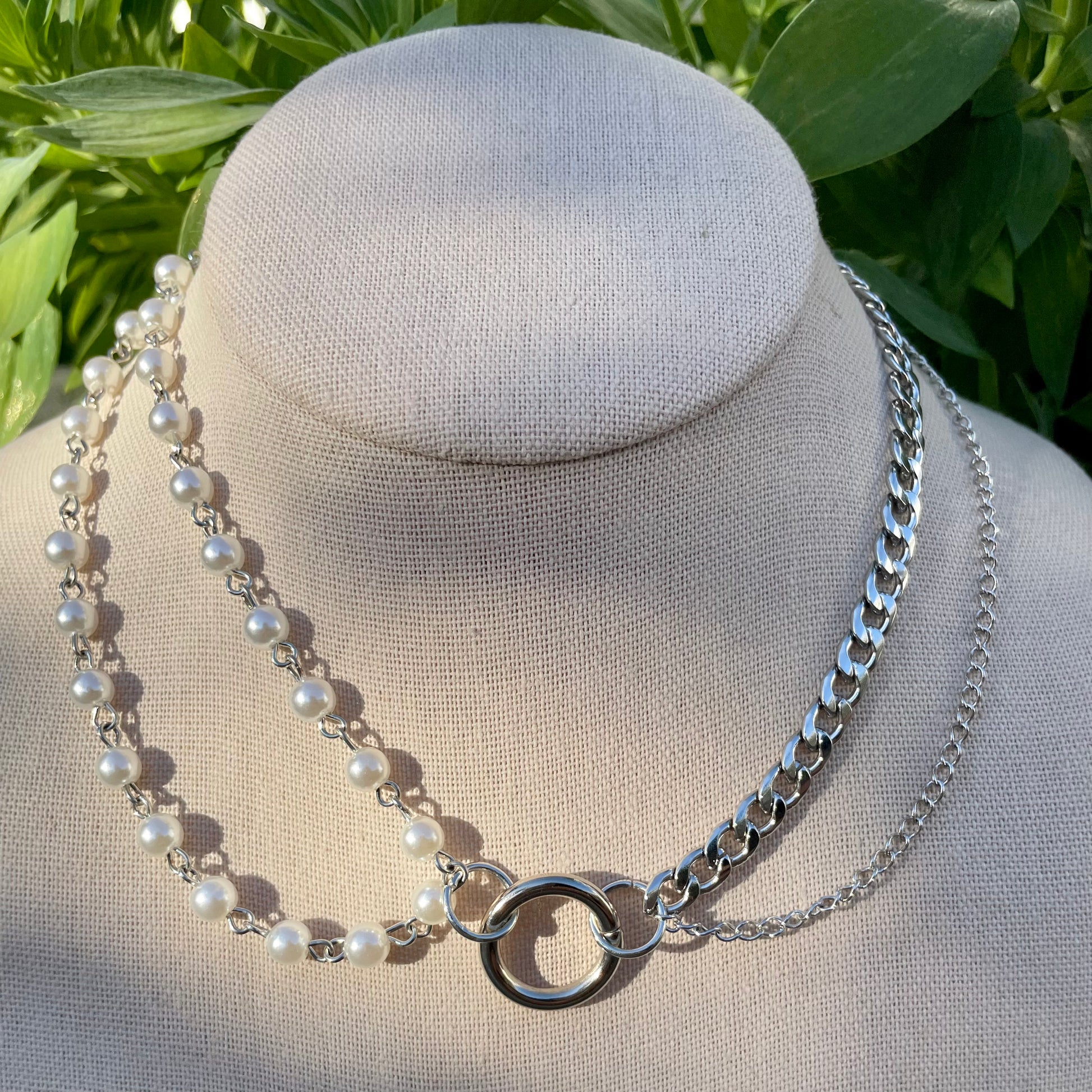Pearl x Stainless Steel “Duality” Choker Adjustable length 15-16”