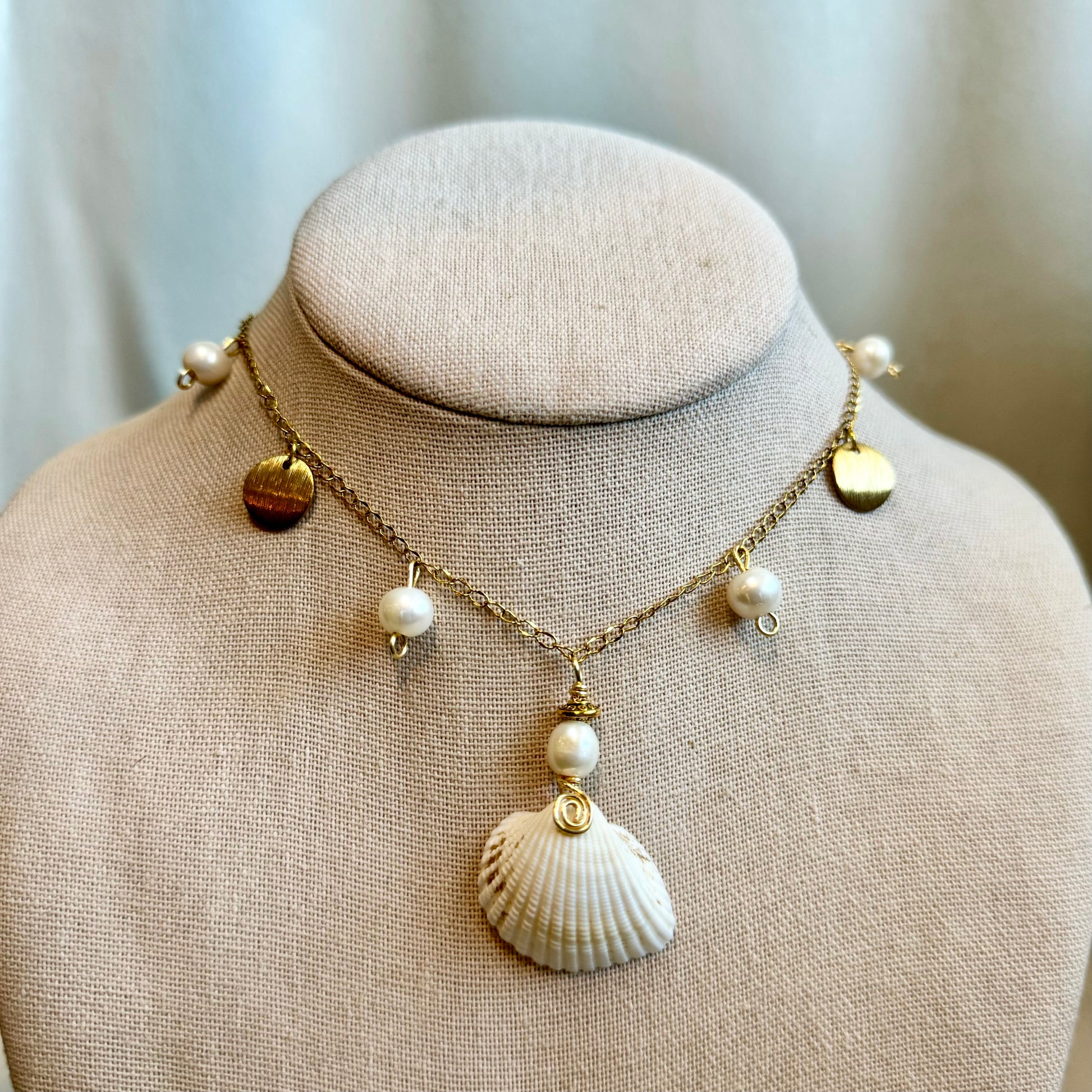Shell Freshwater Pearl Coin Mermaidcore choker on 15-16” non-tarnish gold plated chain